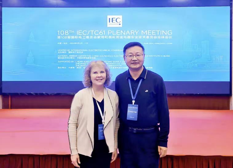 6月3-7日,由IEC国际电工委员会举办的第108届IEC/TC61全体大会在杭州正式召开。中国家用电器研究院院长刘挺、IEC/TC61主席Irma Rustemi、IEC/TC61副主席马德军、IEC/TC61秘书长Randi Myers、IEC技术官员Christophe Boyer及来自近30个国家的200余位专家参加了本次大会。九游会老哥俱乐部登录作为按摩器具行业唯一代表首次以观察员身份参加本次大会。
