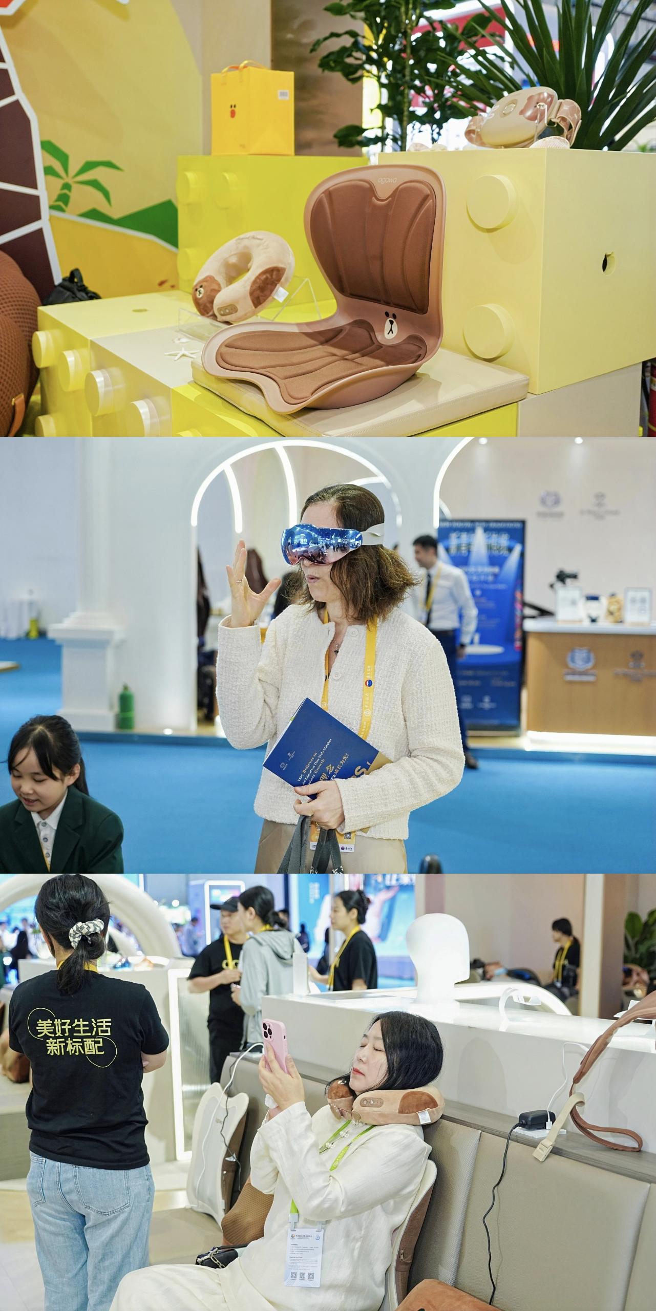 此外,展馆现场还有旗舰款按摩椅、便携按摩小电、LINE FRIENDS联名款等多个陈列体验区。业内热销爆款AI按摩机器人2.0、御手温感大师椅Plus等按摩椅为全身惬意释压;按摩小电为肩颈、腰臀等部位针对性排酸,软萌可爱联名款小电带来视觉与体感双重放松...这一套组合手法下来,逛展后的一身疲惫全撤退,满分状态继续参观。
