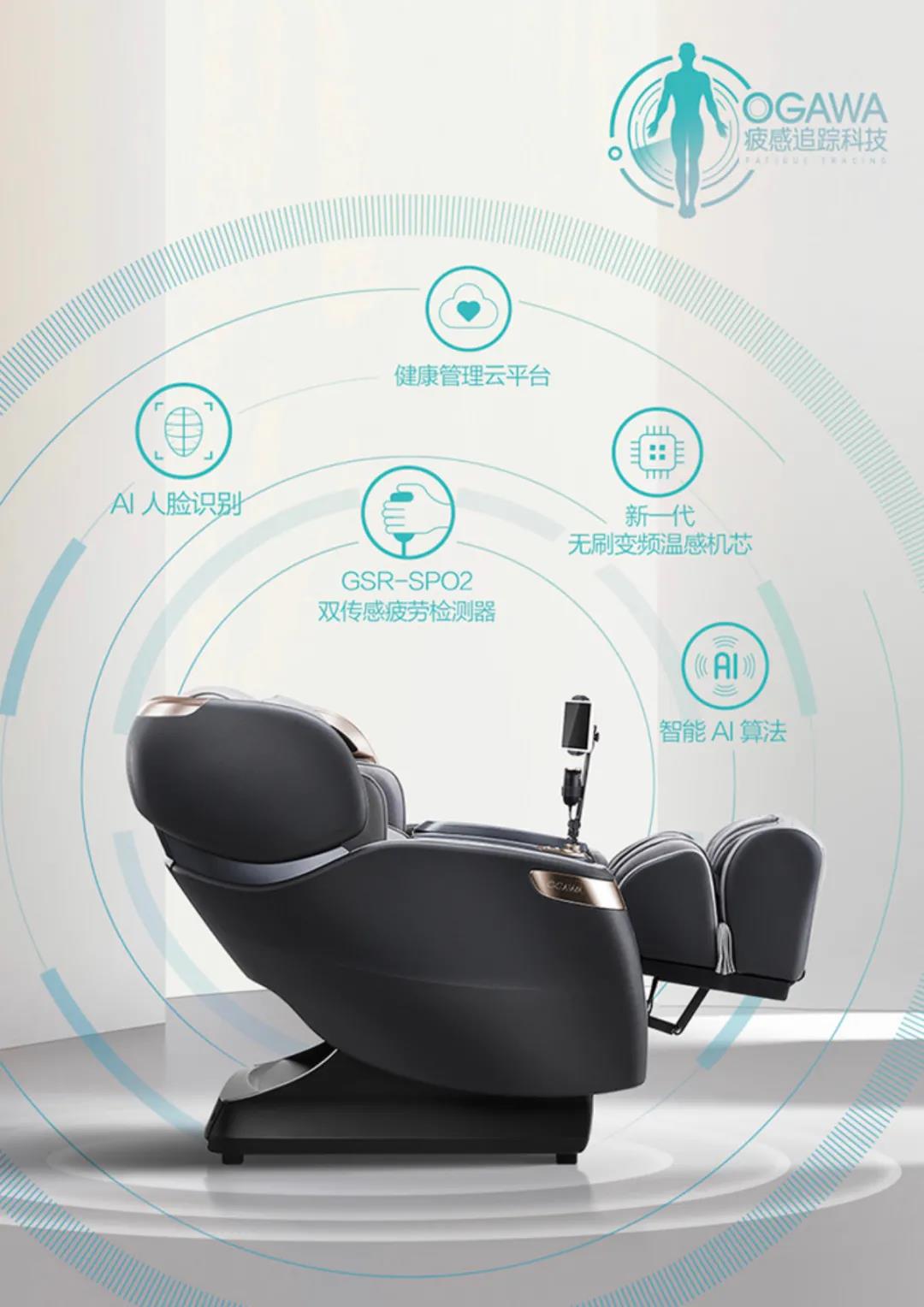 于业界率先采用新一代4D无刷变频温感机芯,搭载四核处理器,按摩更加流畅细腻。刚柔并济间,领略大师级真人按摩功力。独有的疲感追踪科技,从容感知身体酸痛。智能检测疲劳,科学解读肌体9项生理参数,匹配更为精准、有效的按摩方案。AI定制专属按摩方案,千人千方,真正实现让科技与身体心有灵犀。