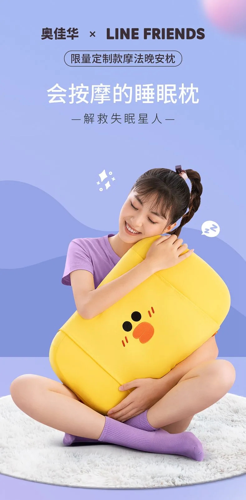 作为按摩小电首发上市的重磅产品,九游会老哥俱乐部登录LINE FRIENDS限量定制款摩法晚安枕,同样不仅拥有萌趣可爱的颜值,更是一款会按摩的实力派睡眠枕。睡前按摩解压,入睡事半功倍的产品功能,主要针对当代人入睡困难的痛点,打出关键性一拳。