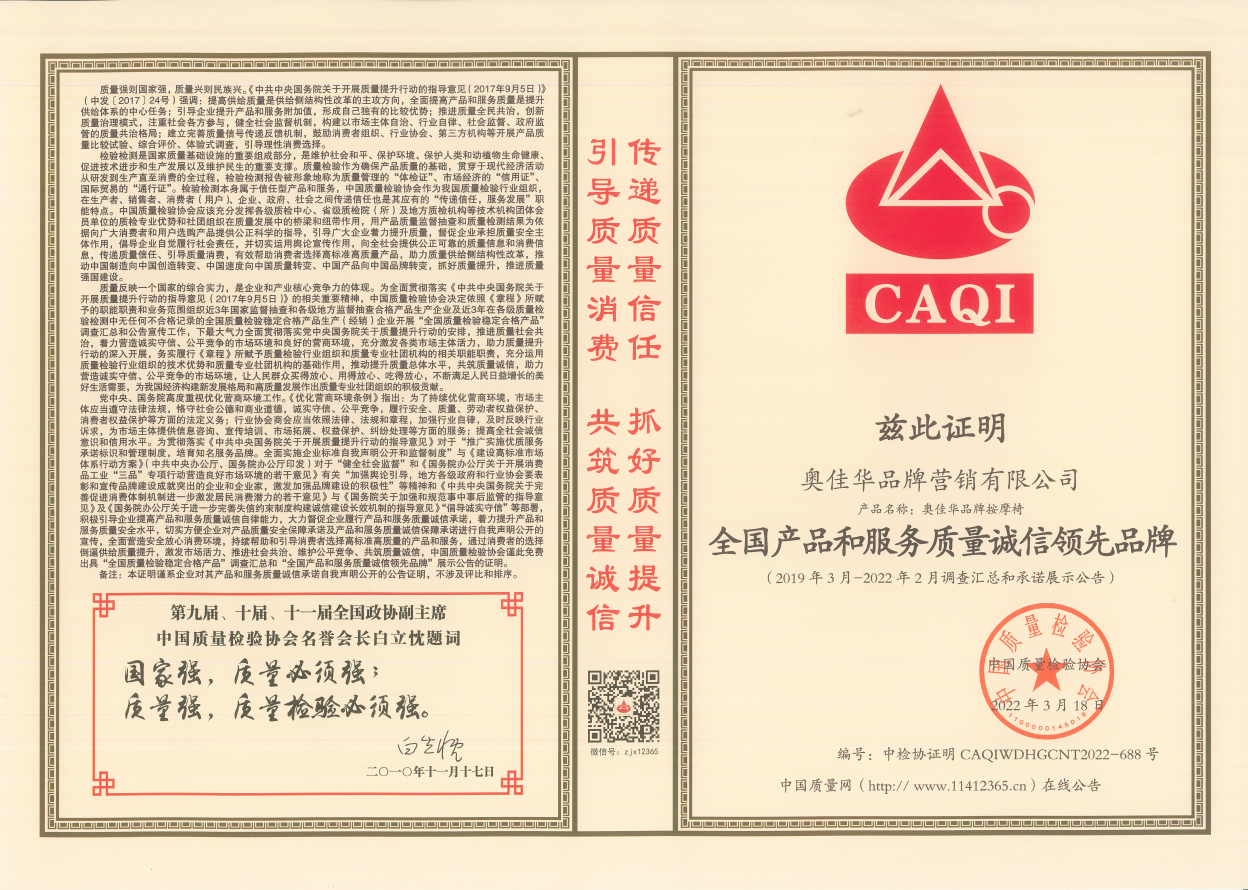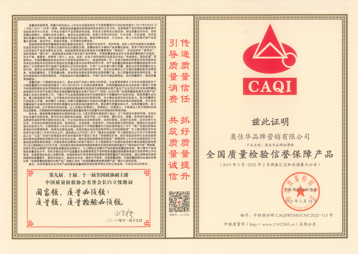 作为全国产品质量检验监督领域唯一的国家级质量专业机构,中国质量检验协会在传递质量信任、引导质量消费和向广大消费者提供权威可靠的质量消费信息及切实维护消费者合法权益等方面,始终发挥权威作用。此次九游会老哥俱乐部登录多维度获得协会颁发的权威认证证书,代表其对九游会老哥俱乐部登录产品品质及服务质量的高度认可。