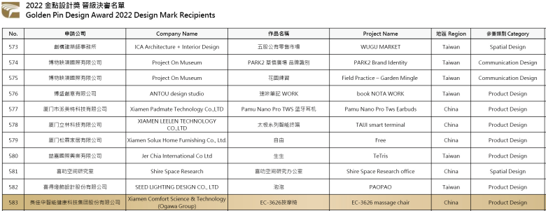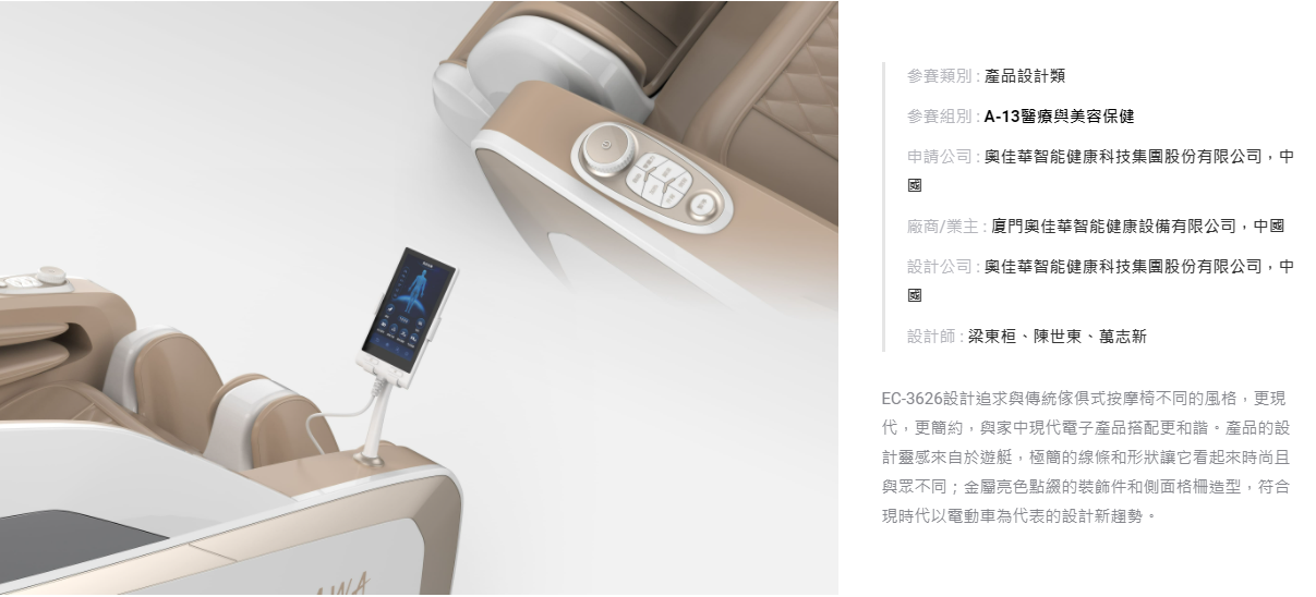 金点设计奖是中国台湾历史最悠久、最权威且最富知名度的专业设计竞赛,已成为优质设计作品的代名词,被媒体称为“设计界金马奖”。